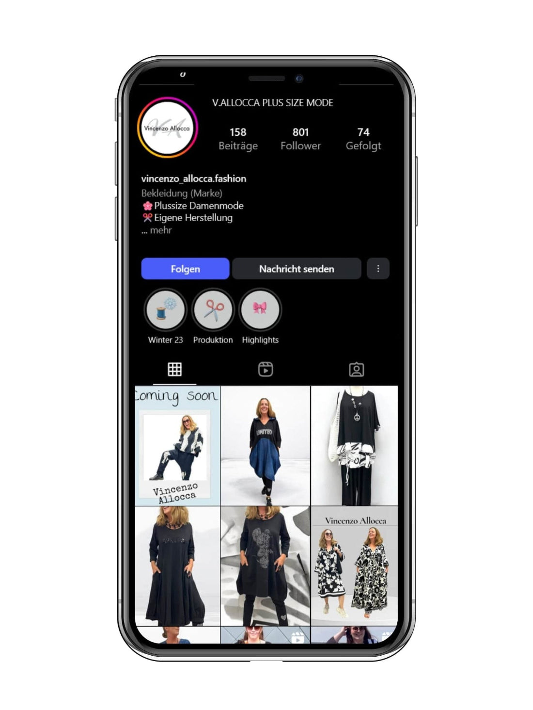 ZUR KOLLEKTIONWillkommen bei Vincenzo Allocca, Ihrem Onlineshop für stilvolle Mode in großen Größen. Bei uns finden Sie Kleidung die zu Ihrer Figur und zu Ihrem Stil passt. Wir entwerfen und produzieren unsere eigene Kollektion mit viel Liebe zum Detail. Jedes Stück entsteht in kleiner Auflage in sorgfältig ausgewählten Betrieben in der Türkei und Polen fair, hochwertig und individuell.