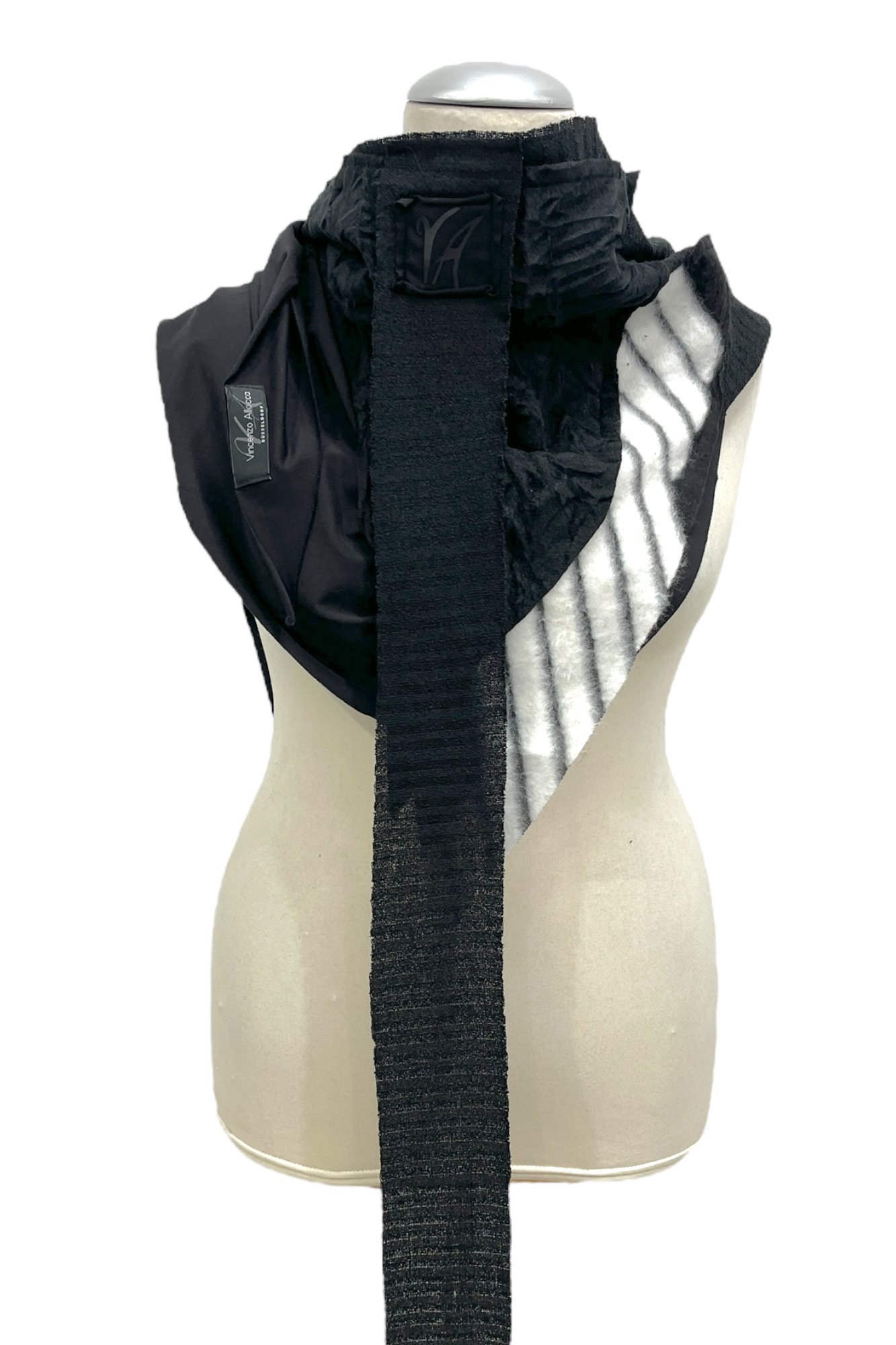 Elaborately crafted triangular scarf. This scarf was handcrafted from many different fabrics. An absolute eye-catcher and must-have. Can be combined with everything.