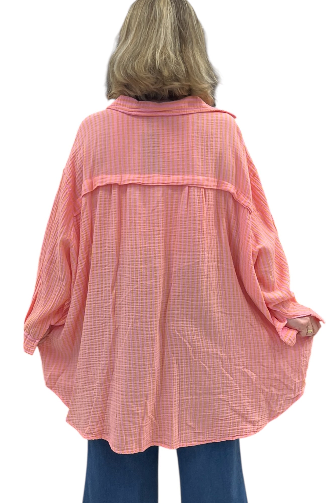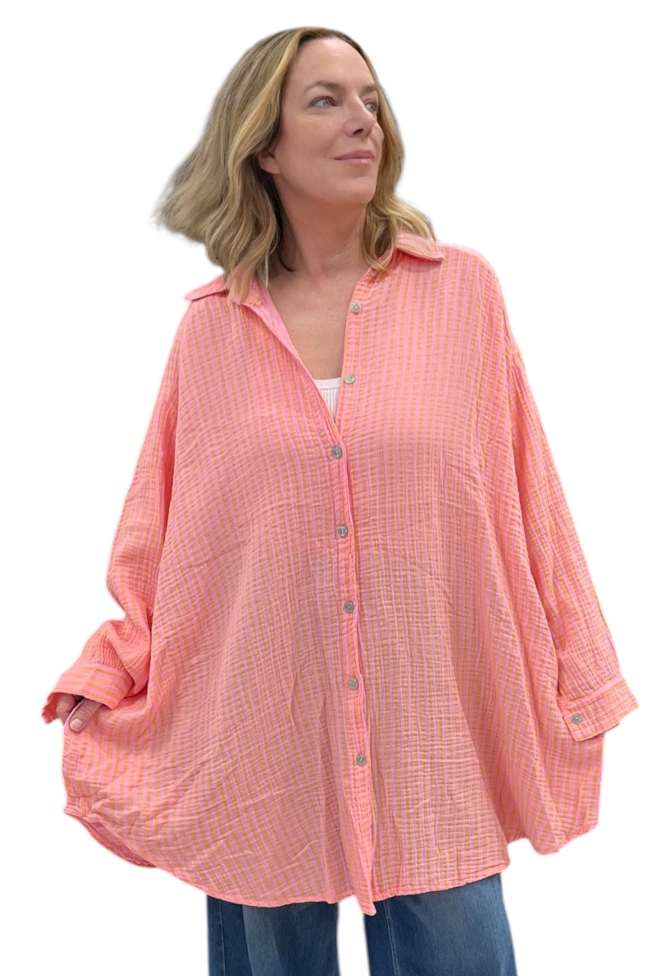Angesagte Hemd-Bluse in Baumwoll-Pique. Super weich auf der Haut zu tragen. Mit typischen Hemd-Kragen. Rund am Saum geschnitten. Mit langen Arm.