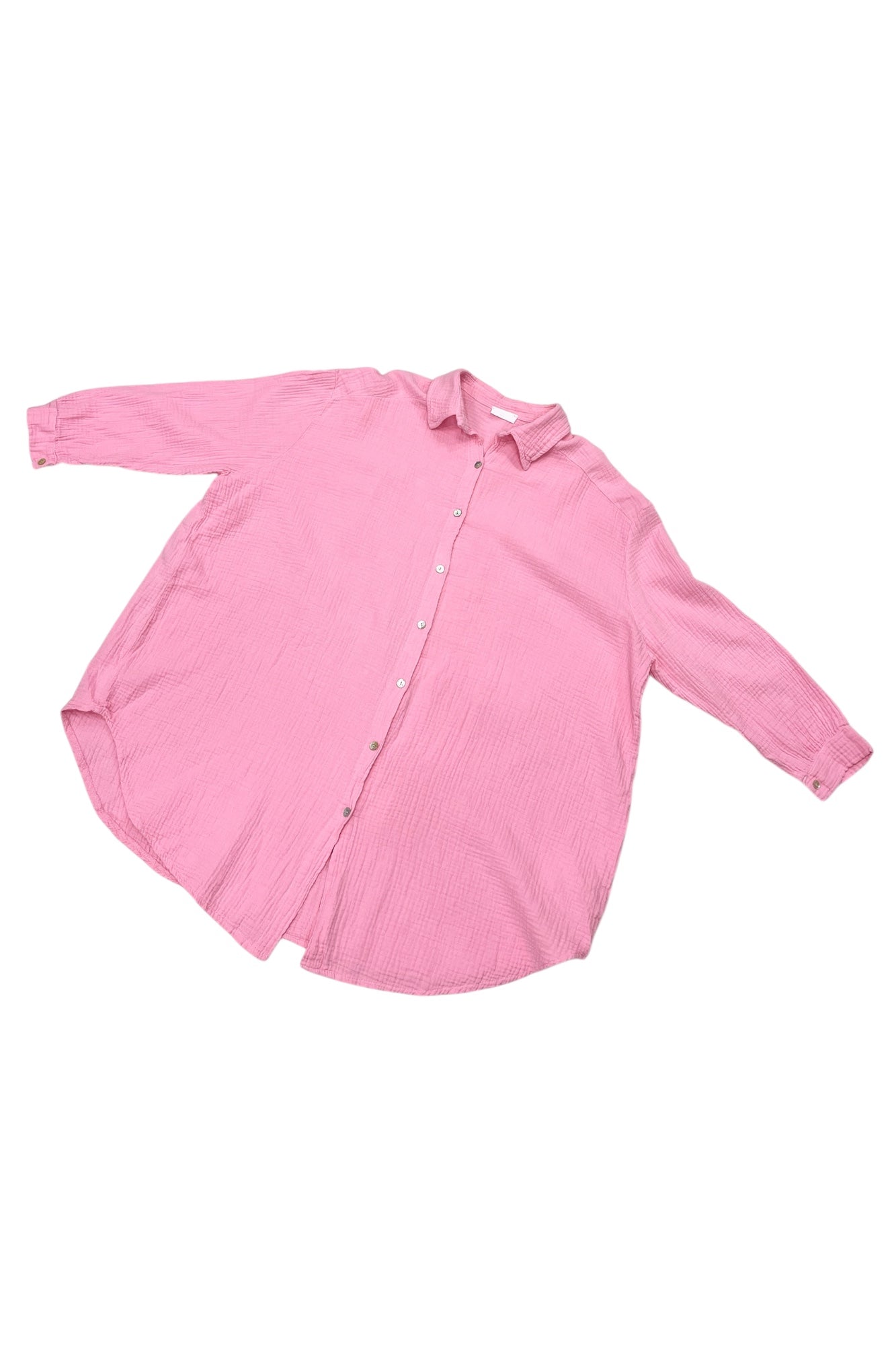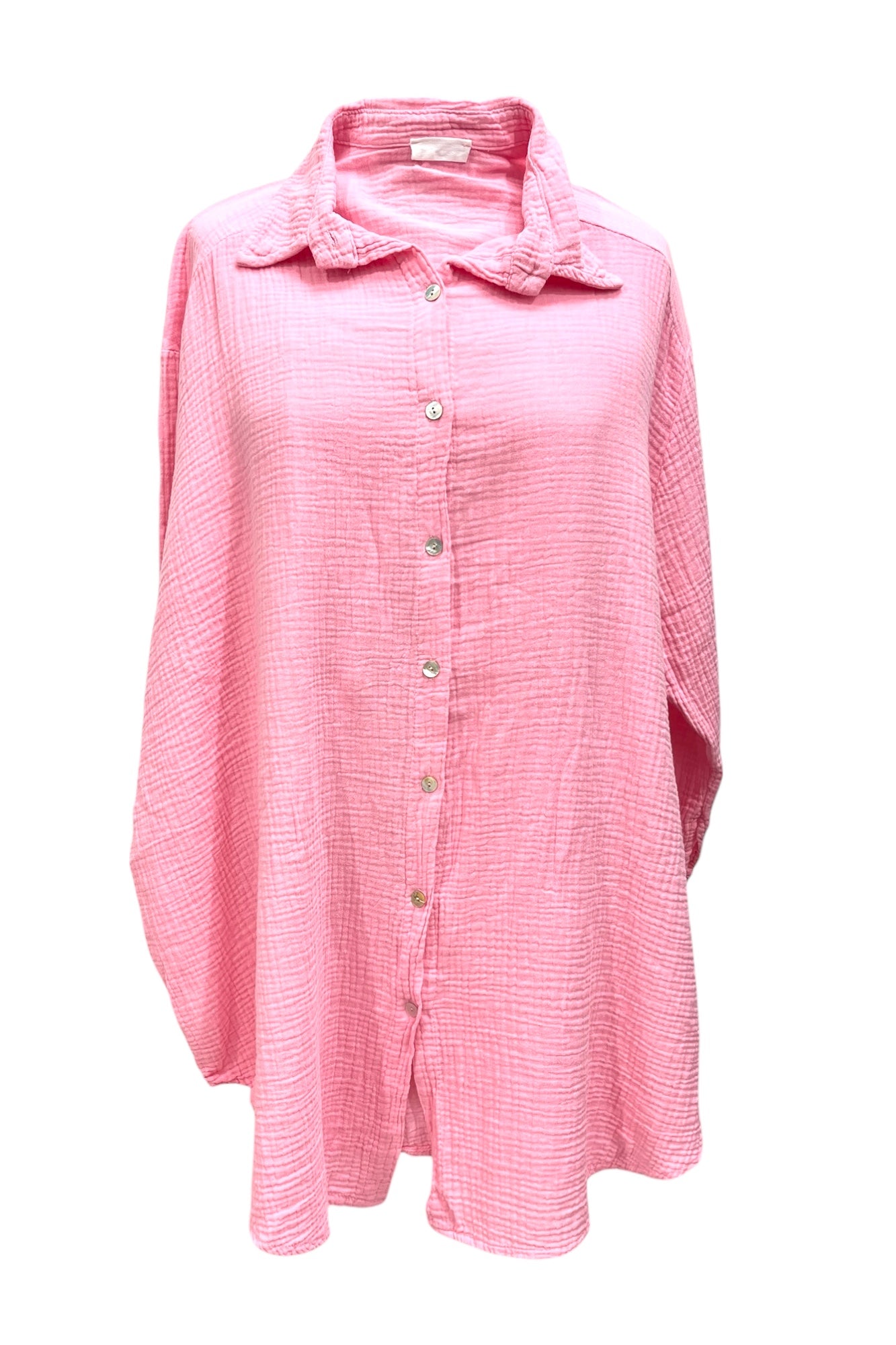 Angesagte Hemd-Bluse in Baumwoll-Pique. Super weich auf der Haut zu tragen. Mit typischen Hemd-Kragen. Rund am Saum geschnitten. Mit langen Arm.
