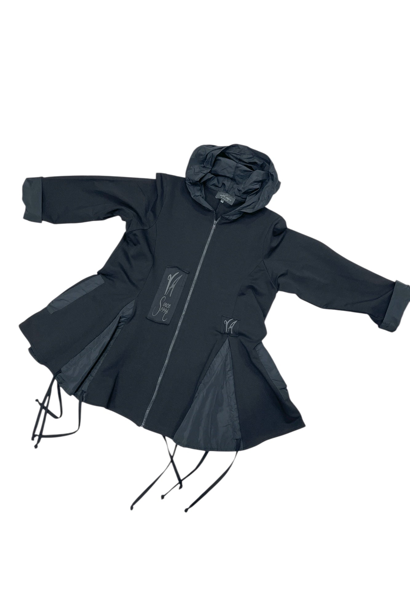 Diese außergewöhnliche Jacke überzeugt durch ihren hochwertigen Materialmix und ein modernes Design. Gefertigt aus weichem, angenehm zu tragendem Jersey und gepatcht mit hochwertigen Memory-Stoff. Die Kapuze verleiht der Jacke eine lässige Note, während der schwingende, Figur schmeichelnde Schnitt eine feminine Silhouette zaubert. Praktische seitliche Eingriff Taschen fügen sich harmonisch ins Design ein. Aufgesetzte Patches setzen modische Akzente. Am Saum angebrachte Bänder ermöglichen ein individuelles Raffen.