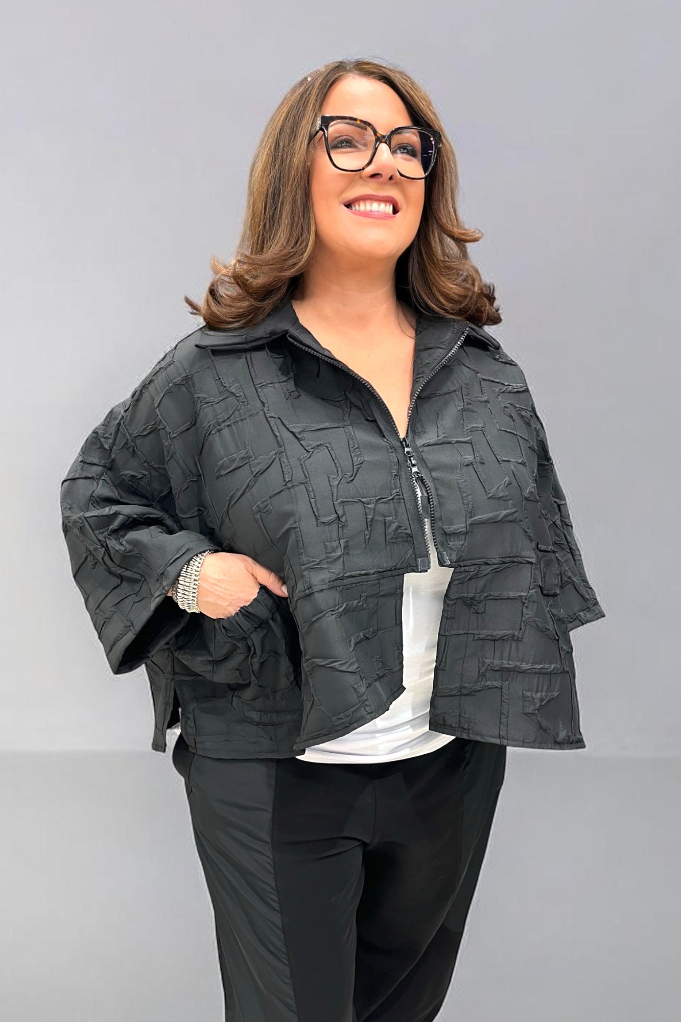 Kurze Jacke in Jaquard-Crash 5503