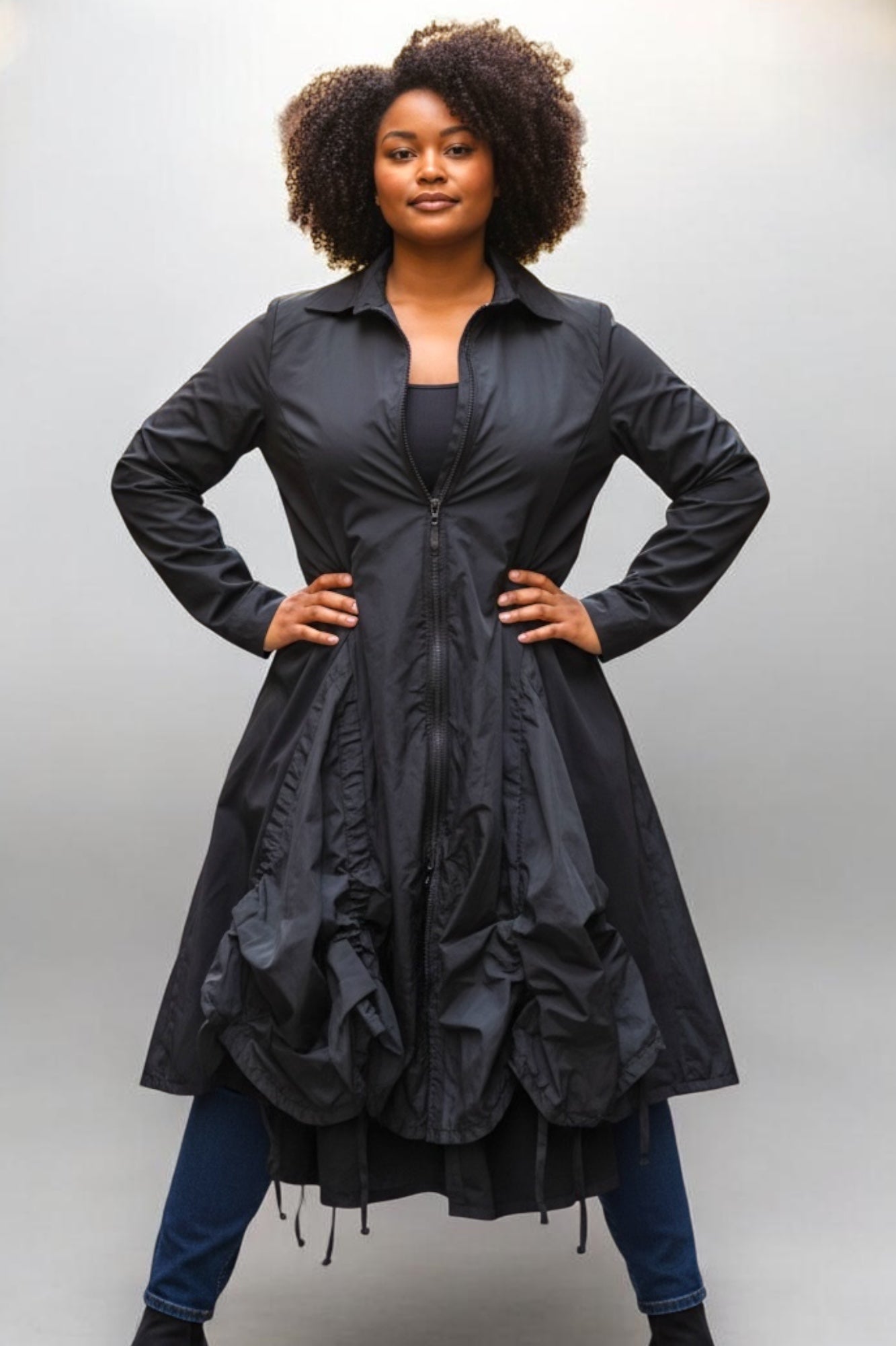 Dieser außergewöhnliche Mantel von Vincenzo Allocca vereint modernen Stil mit avantgardistischem Design – und lässt sich ebenso als Kleid tragen. Der spannende Stoff-Mix aus hochwertiger Baumwoll-Elasthan-Qualität und edlem Memory-Stoff verleiht dem Modell seine extravagante Optik. Die gepatchte Verarbeitung unterstreicht den individuellen Charakter und macht jedes Outfit zu einem modischen Highlight. Der 2-Wege-Reißverschluss ermöglicht vielseitige Styling-Optionen. Bänder zum Raffen setzen feminine Akzente und erlauben eine variable Form. Seitliche Eingrifftaschen sorgen für Komfort und unterstreichen den modernen Look.