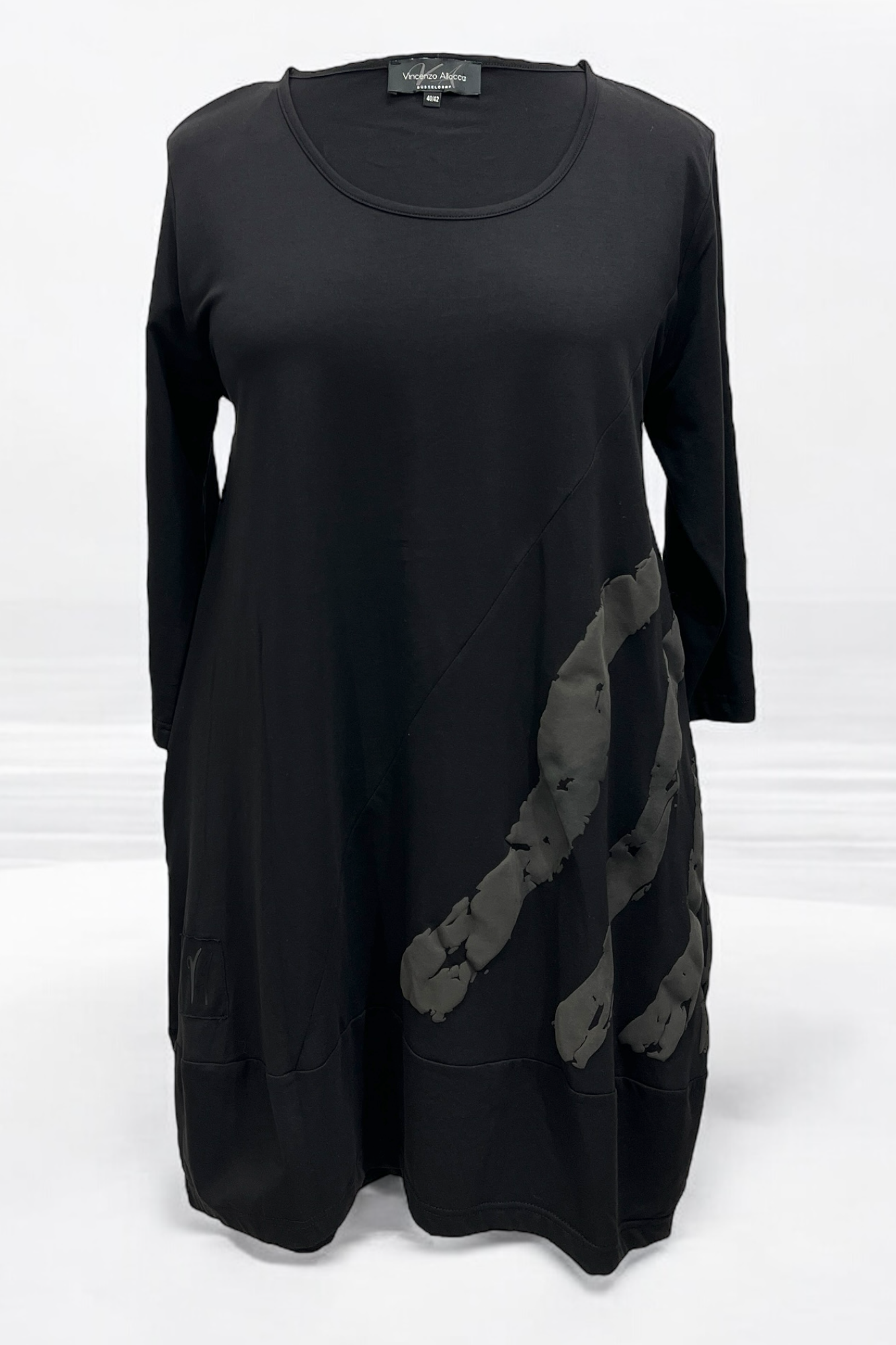 Tunika mit Highprint von Vincenzo Allocca. Aus soften Jersey mit Druck in der Farbe taupe.
