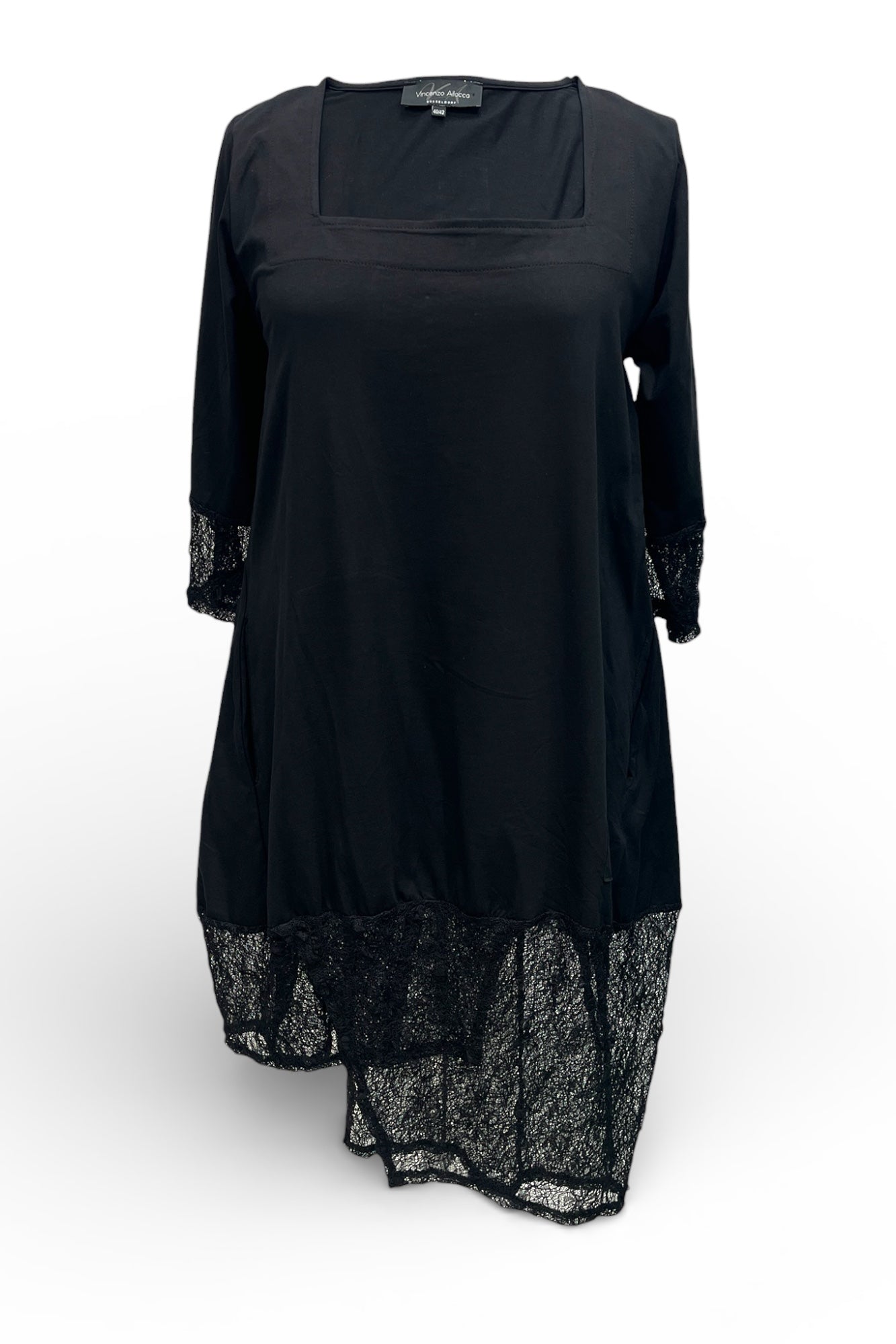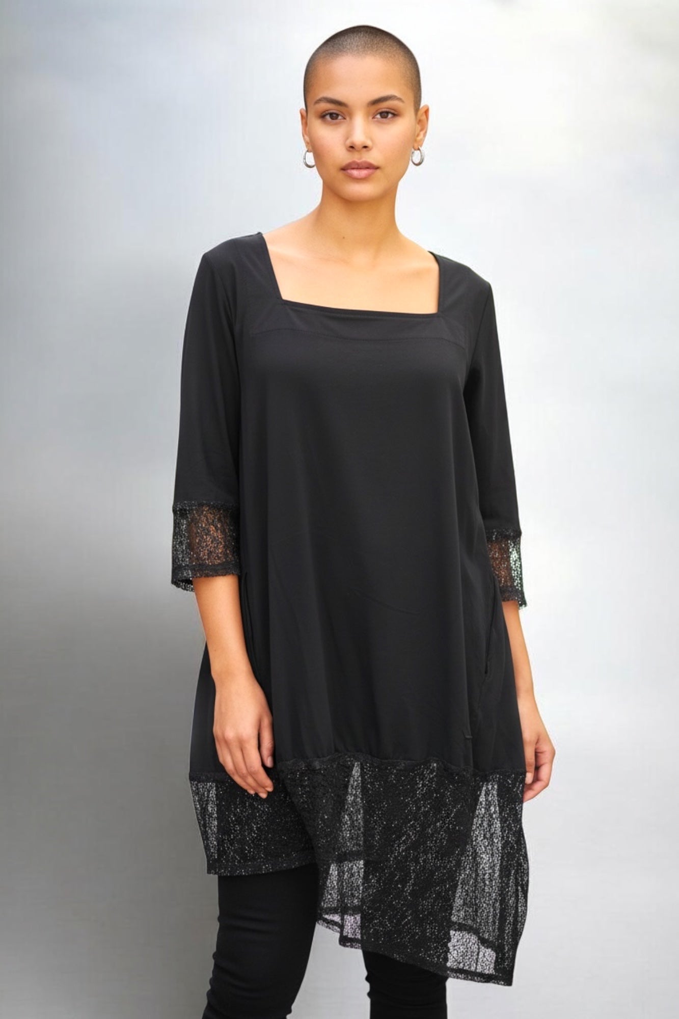 Tunika mit Spitze & Wow-Ausschnitt von Vincenzo Allocca. Lässig trifft auf Glam! Diese Tunika aus superweichem Jersey fühlt sich nicht nur traumhaft an, sondern setzt mit edler Spitze auch ein echtes Fashion-Statement. Der angesagte Karree-Ausschnitt sorgt für einen modernen Look und rückt dein Dekolleté perfekt in Szene. Mit seitlichen Eingrifftaschen – weil Style und Komfort einfach zusammengehören. Ob zur Jeans, Leggings oder chic zur Stoffhose – diese Tunika macht jedes Outfit im Handumdrehen besonders.